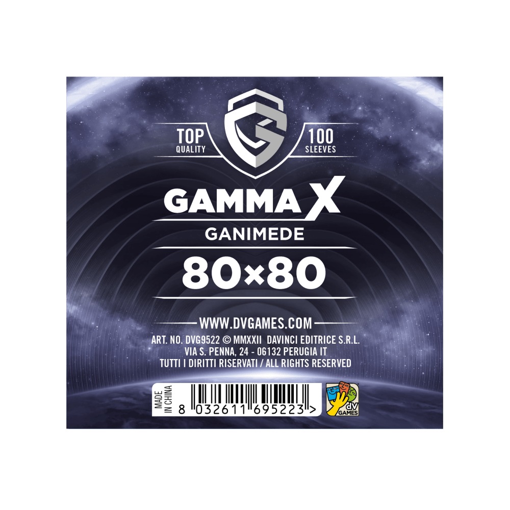 Le bustine protettive giochi da tavolo Gamma X Ganimede sono ideali per carte quadrate di 80×80 mm, perfette per giochi di posizionamento o set collection con illustrazioni estese. Garantiscono una protezione uniforme e una resa visiva limpida, mantenendo la brillantezza dei colori nel tempo. Realizzate con materiali PVC Free e Acid Free, le Ganimede offrono una resistenza elevata a graffi e deformazioni. Lo spessore di 80 micron protegge le carte da segni d’usura, assicurando una sensazione di solidità e fluidità durante il gioco.