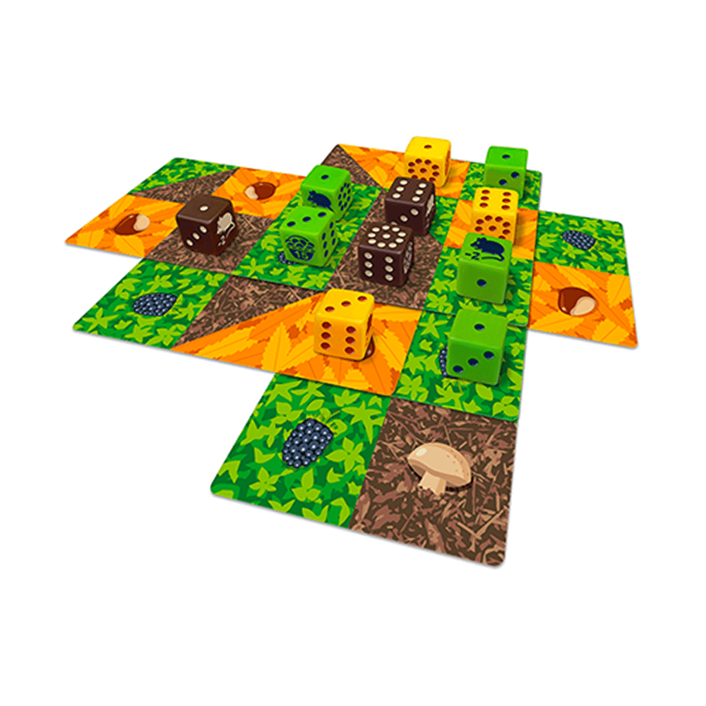 Durante la partita, il giocatore sovrappone le carte area per raccogliere il maggior numero possibile di risorse: castagne, frutti di bosco e funghi che crescono in equilibrio con la fauna locale. Alcune carte presentano aree divise, richiedendo pianificazione e intuito, mentre i dadi speciali rappresentano topolini affamati che possono aiutare o ostacolare la raccolta. L’obiettivo è ottimizzare ogni scelta, massimizzando i punti in una partita che premia calma, logica e osservazione.