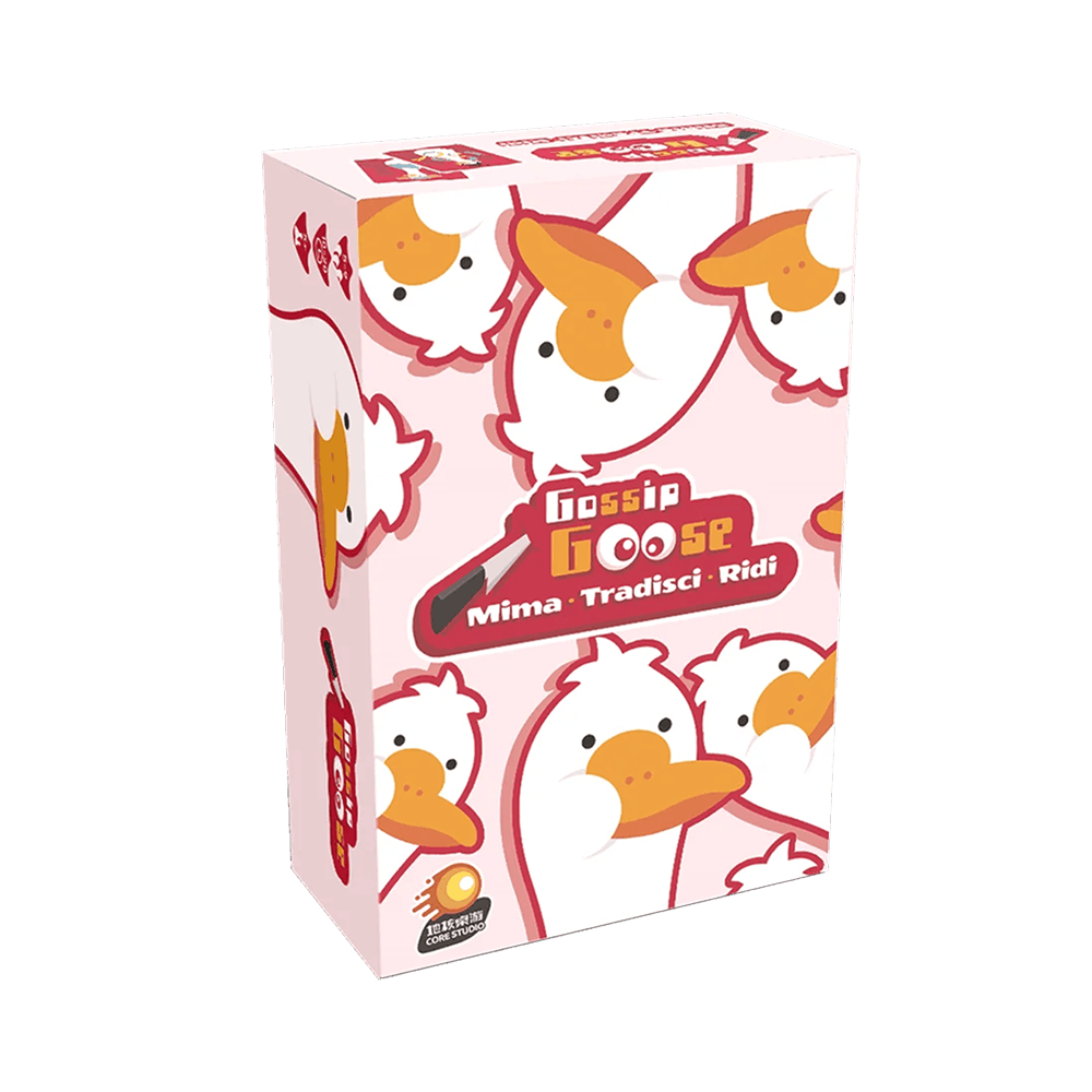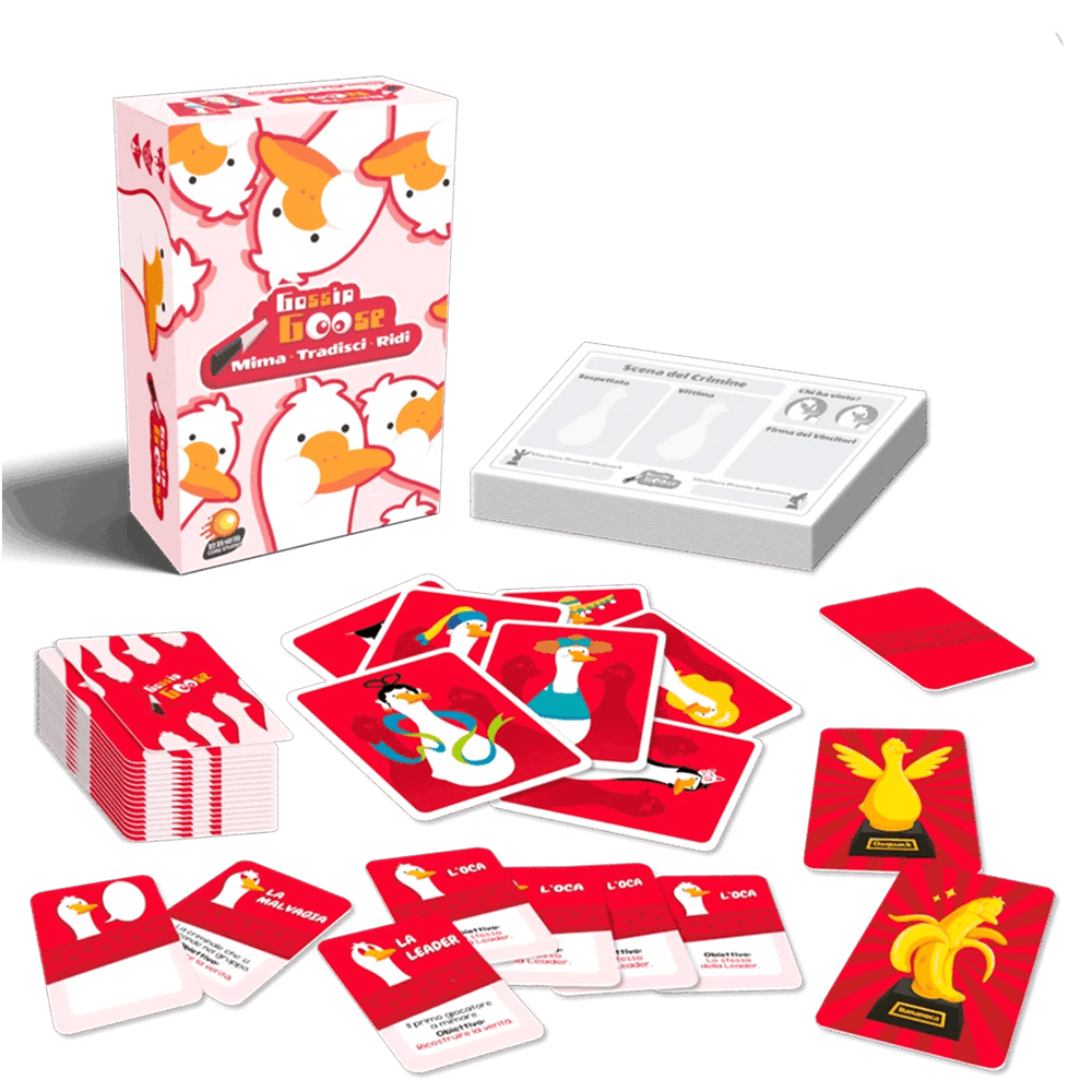 Gossip Goose – Gioco da Tavolo: un party game per 5-9 giocatori, dove mimica, ruoli nascosti e deduzione guidano un’indagine nel villaggio delle oche. Questo titolo trasforma ogni partita in un’esperienza caotica, divertente e ricca di bluff.